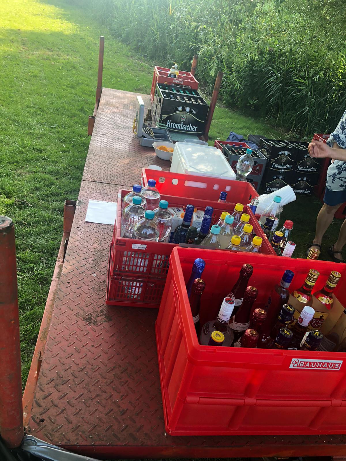Die Wetterlage hat es uns glücklicherweise wieder erlaubt an unserem schönen AWV Strand zu grillen. Tidebedingt leider dieses mal ohne Hochwasser und Badezeit zum Sonnenuntergang. Dank tatkräftiger Unterstützung des Trecker-Teams von Lotte konnten wir Tische, Bänke sowie die Grillutensilien vom Vereinsheim an die Badestelle fahren. Die Ladefläche des Anhängers eignet sich nämlich auch sehr gut als Bar-Tresen. Vielen Dank an die freiwilligen Helfer:innen vom AWV und FWV, die unseren Gästen hier einen tollen Auftaktabend bereit haben.